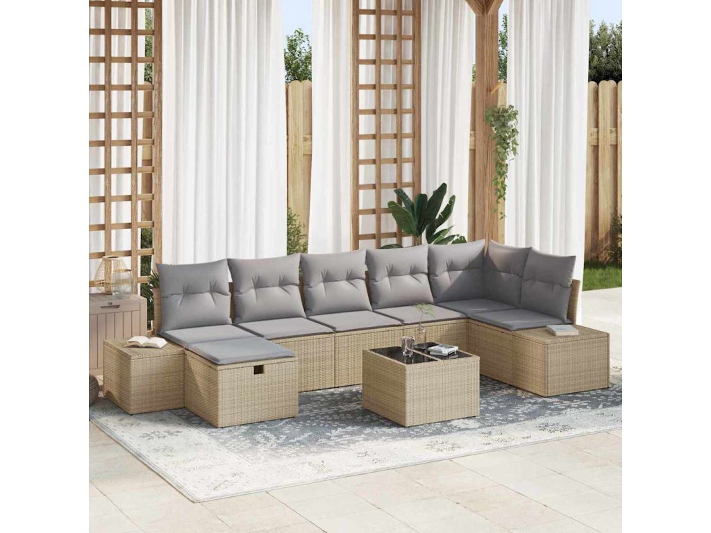 Súprava záhradných pohoviek s vankúšom 8 pcs Béžová polyratan 3359409