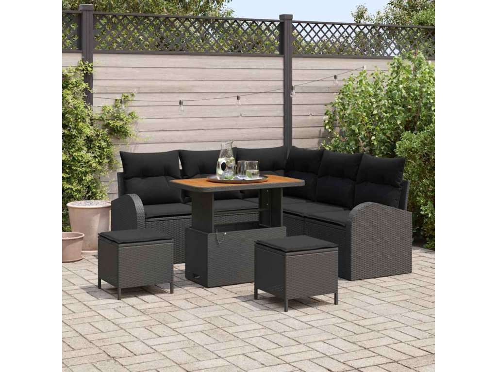 Súprava záhradných pohoviek s vankúšom 8 pcs Čierna Poly ratan 3362394