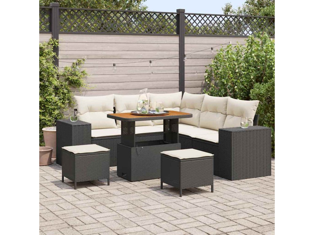 Súprava záhradných pohoviek s vankúšom 8 pcs Čierna polyratan 3362005