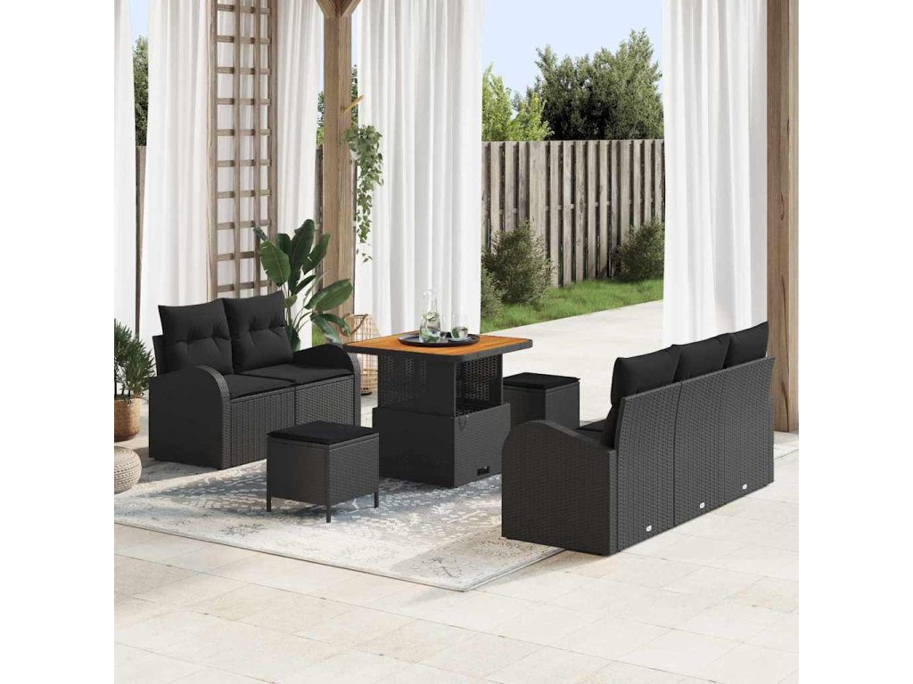 Súprava záhradných pohoviek s vankúšom 8 pcs Čierna polyratan 3362334