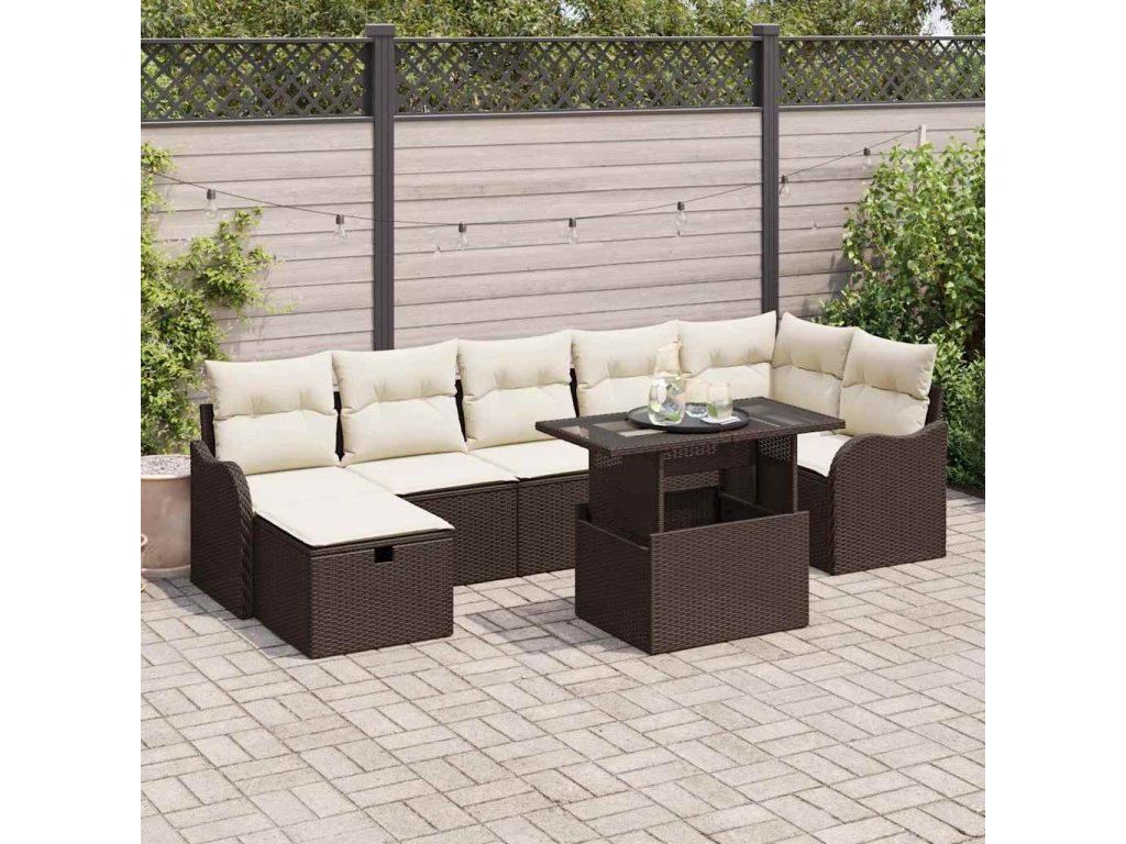 Súprava záhradných pohoviek s vankúšom 8 pcs Hnedá Poly ratan 3361057