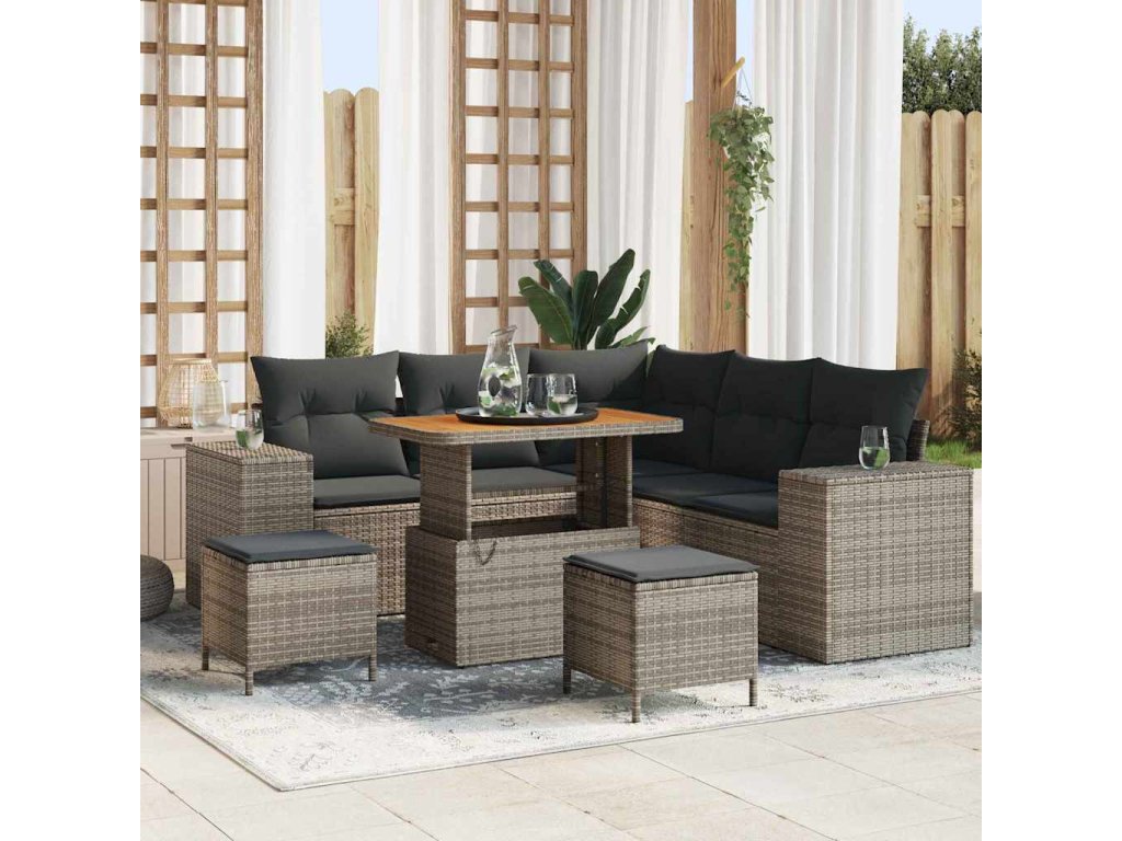 Súprava záhradných pohoviek s vankúšom 8 pcs Sivá polyratan 3362008