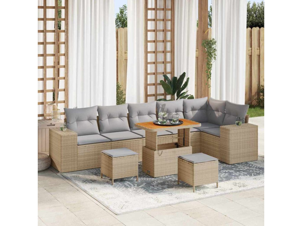 Súprava záhradných pohoviek s vankúšom 9 pcs Béžová polyratan 3362027