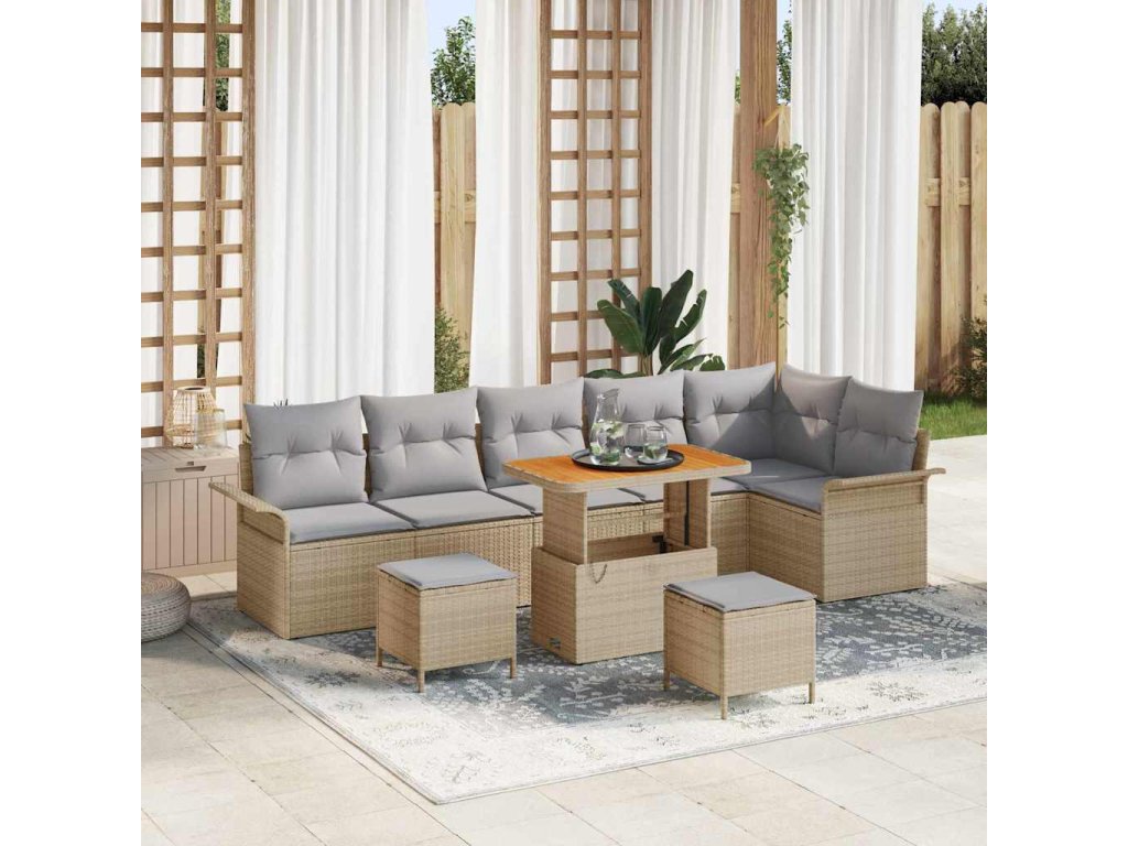 Súprava záhradných pohoviek s vankúšom 9 pcs Béžová polyratan 3362157