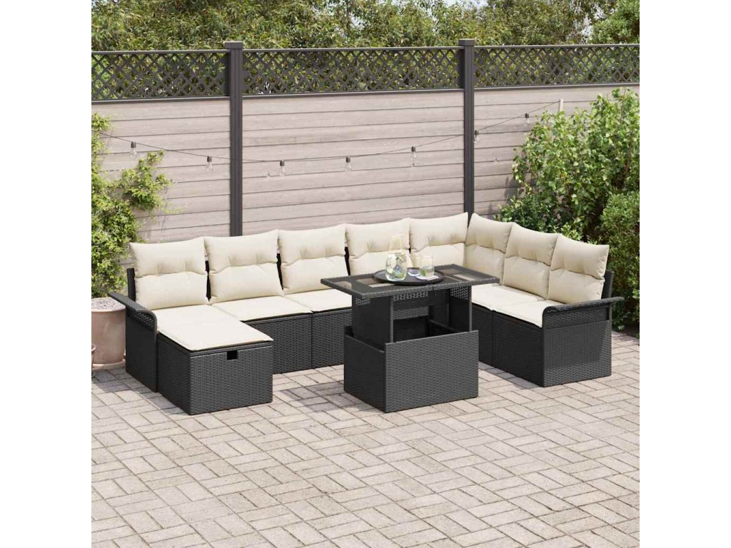 Súprava záhradných pohoviek s vankúšom 9 pcs Čierna Poly ratan 3359694