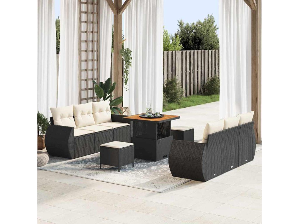 Súprava záhradných pohoviek s vankúšom 9 pcs Čierna polyratan 3361825