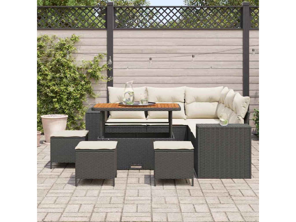 Súprava záhradných pohoviek s vankúšom 9 pcs Čierna polyratan 3362010
