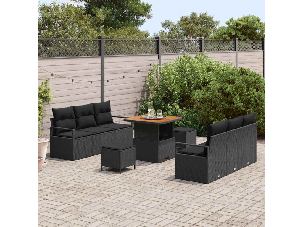 Súprava záhradných pohoviek s vankúšom 9 pcs Čierna polyratan 3362474