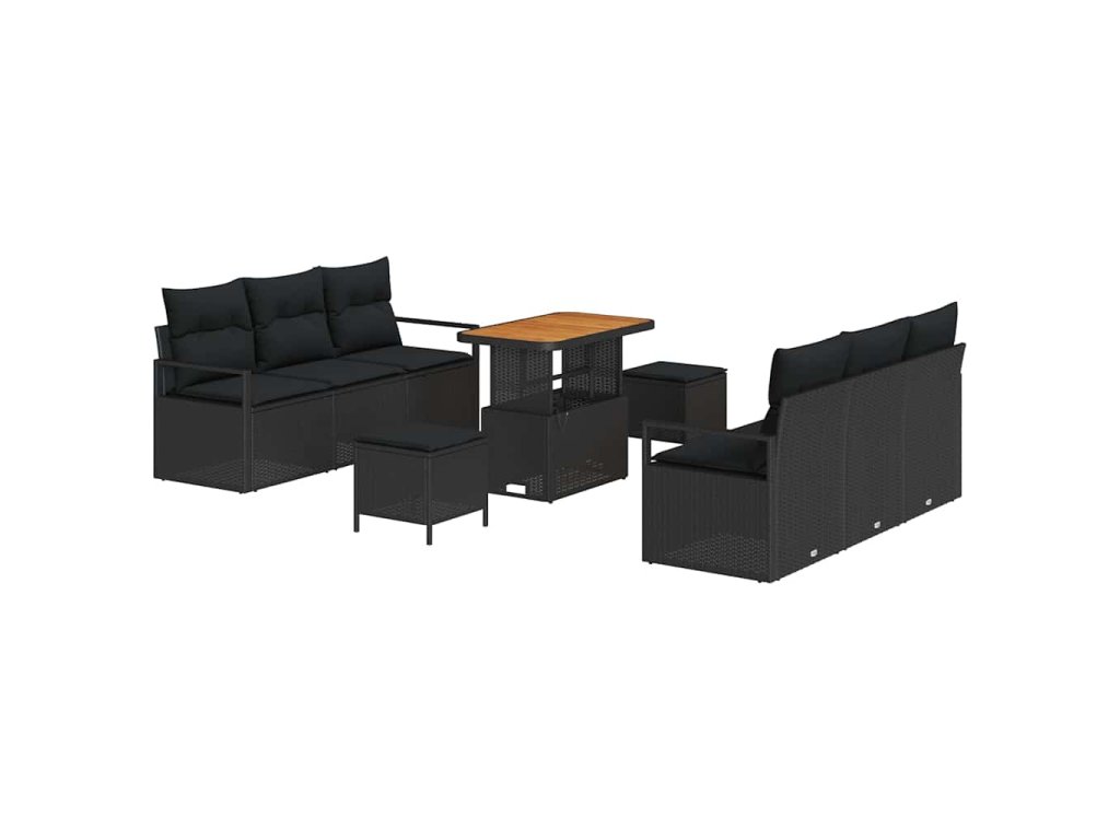 Súprava záhradných pohoviek s vankúšom 9 pcs Čierna polyratan 3362479