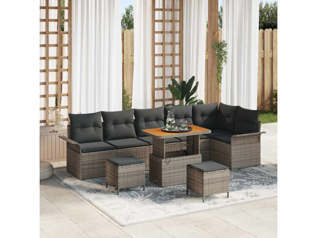 Súprava záhradných pohoviek s vankúšom 9 pcs Sivá polyratan 3362158