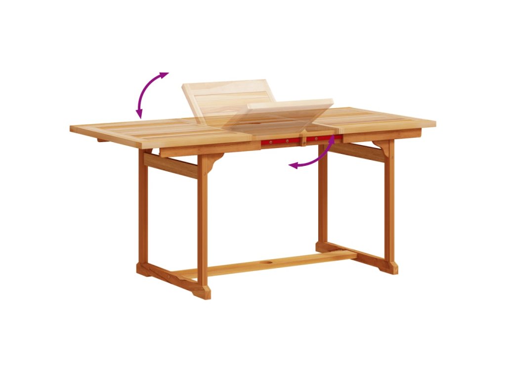 - Praktický dizajn: Vďaka špeciálnemu dizajnu je možné tento záhradný stôl predĺžiť, keď je potrebný ďalší priestor. Okrem toho je v doske stola otvor na slnečník, takže naň môžete ľahko pripevniť slnečník a vytvoriť si tak tienisté miesto.