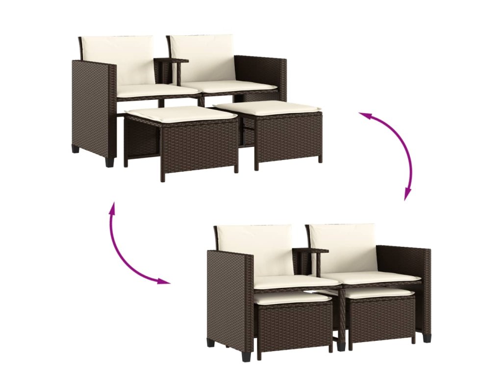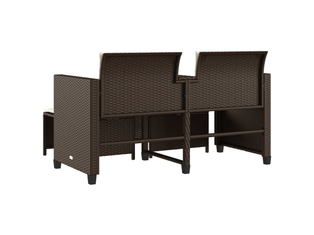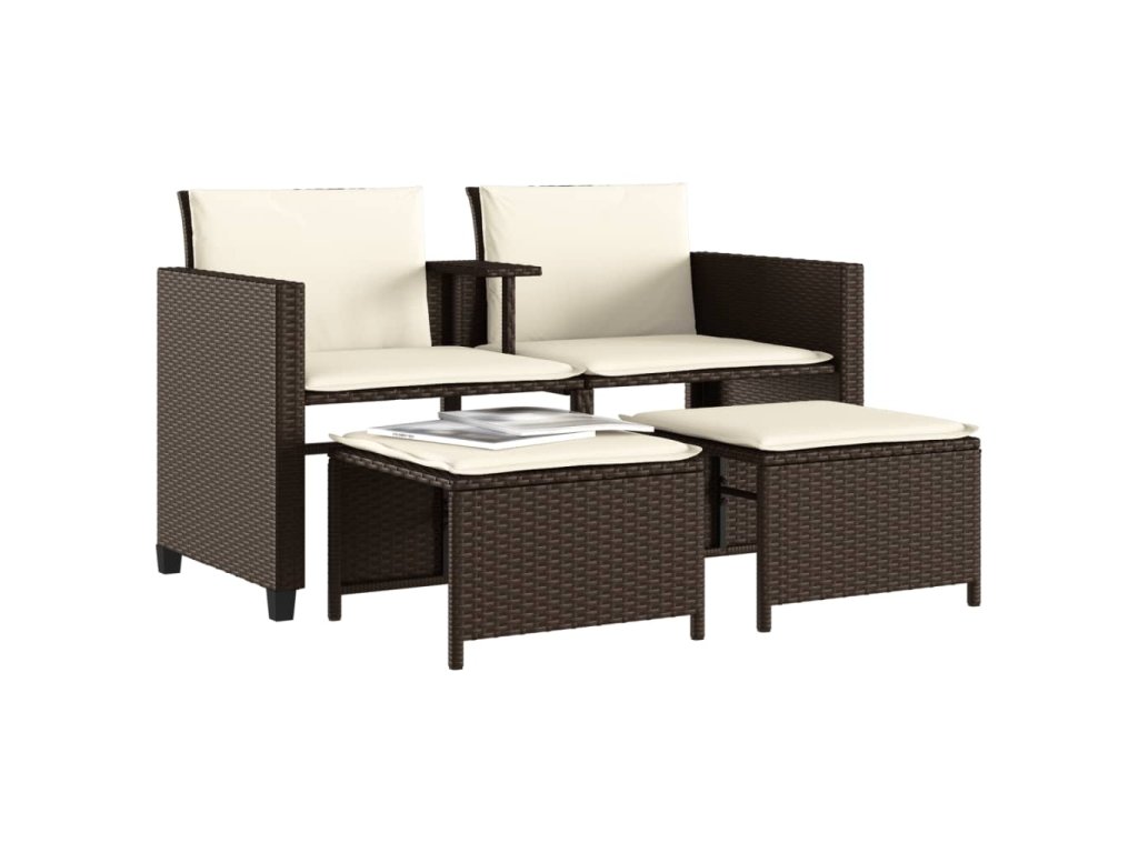 Záhradná pohovka, 2-miestna, stôl a taburetky, hnedá, polyratan 368417