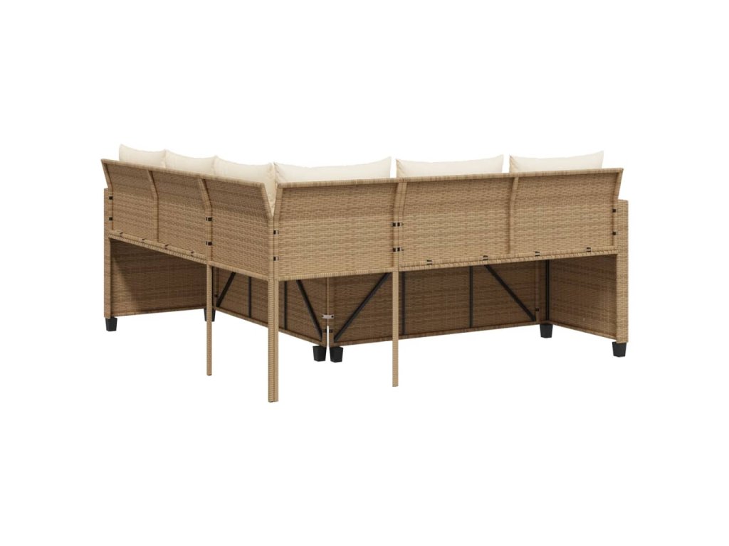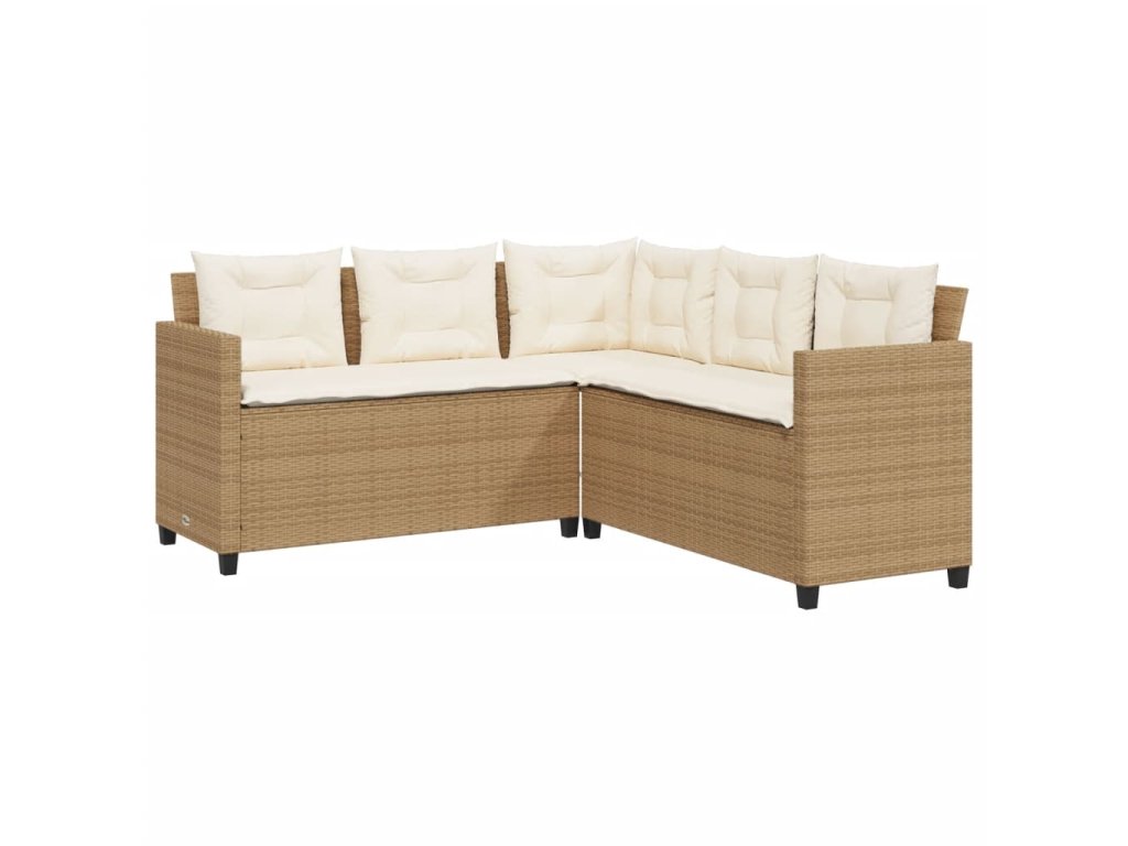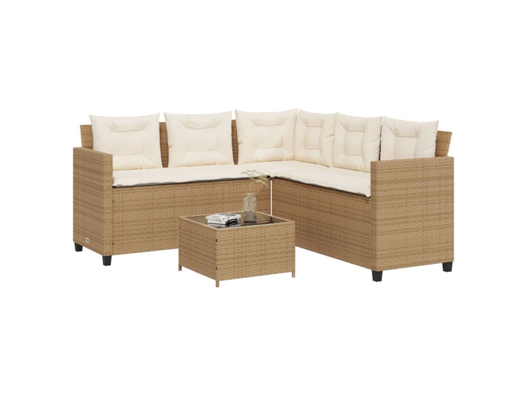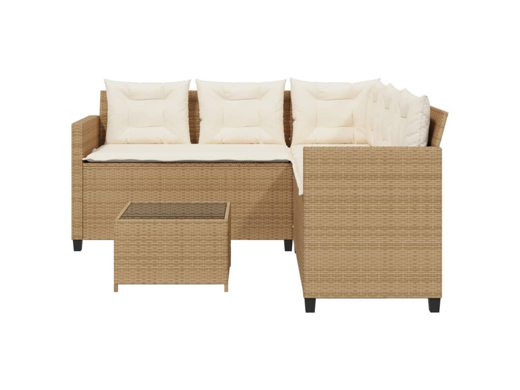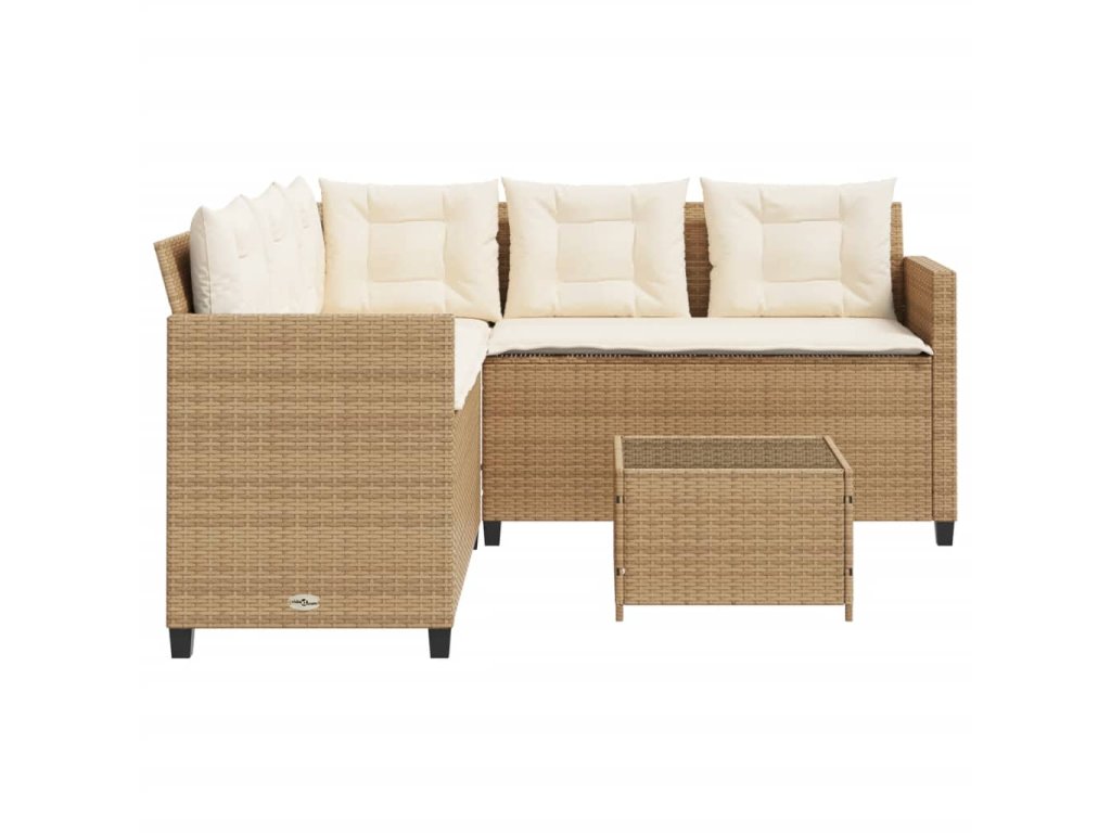 Záhradná pohovka so stolíkom a vankúšmi tvar L béžová polyratan 369043