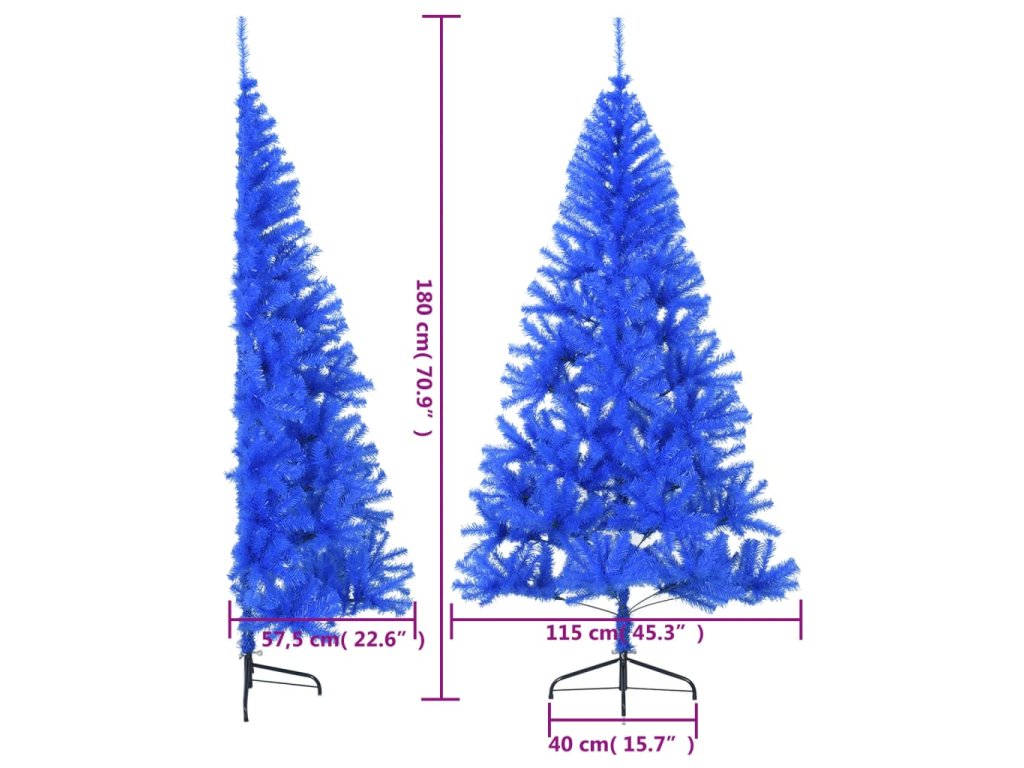 Umelý vianočný polovičný stromček s podstavcom modrý 180cm PVC 344682