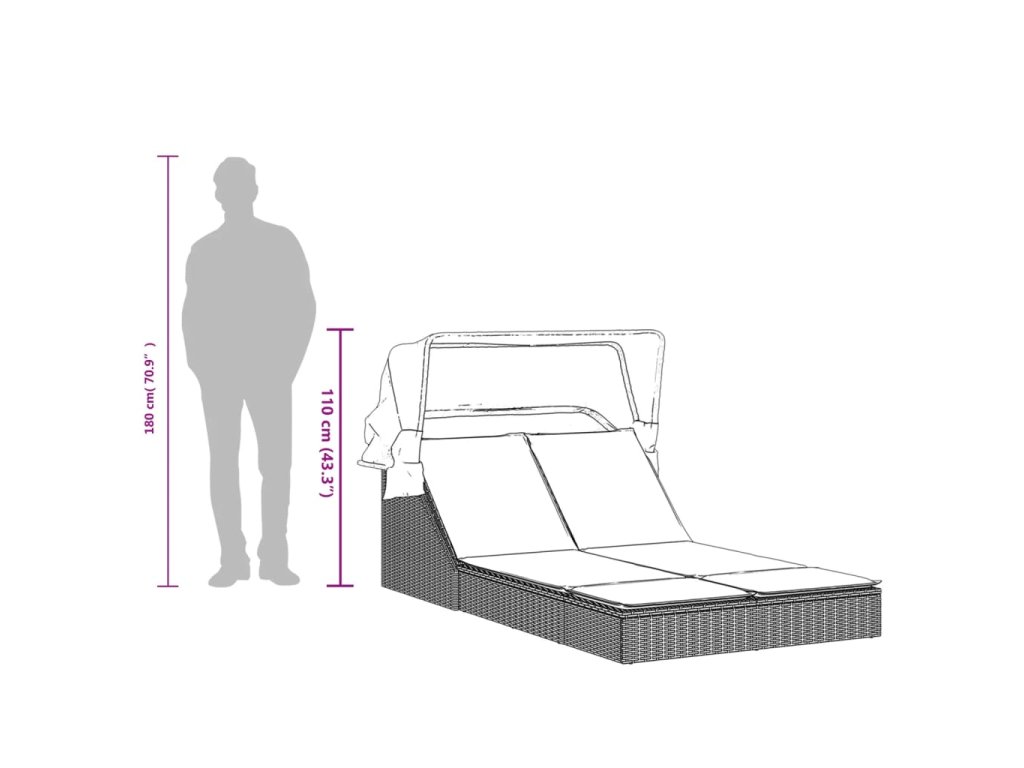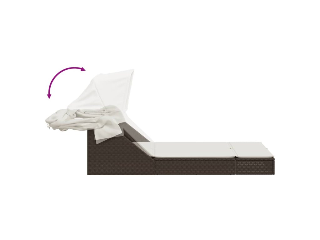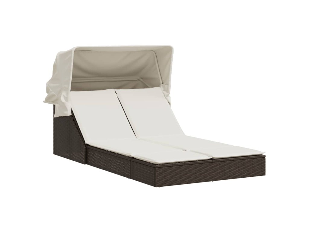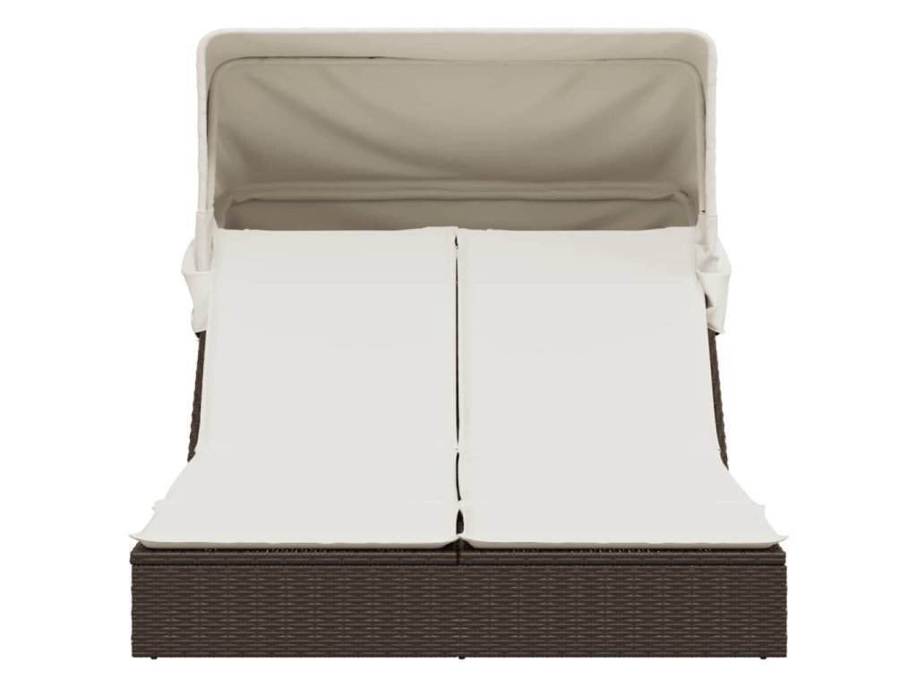 Dvojité ležadlo so strieškou a podložkami, hnedé, polyratan 368638