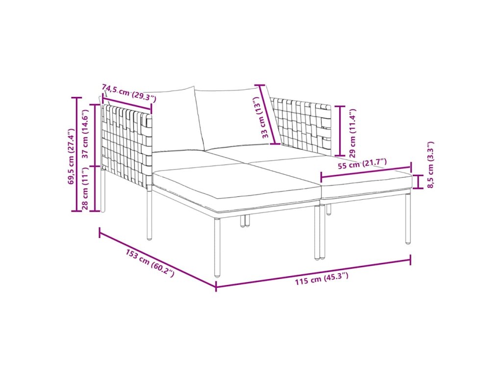Lehátko na slnenie s vankúšom Antracit 153 x 115 x 69.5 cm 42004136