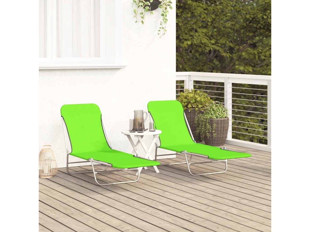 Skladacie záhradné ležadlá 2 ks oceľ a látka zelené 310343