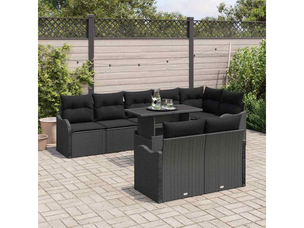 Oddychová súprava s vankúšom 9 pcs Čierna Poly ratan 3348489