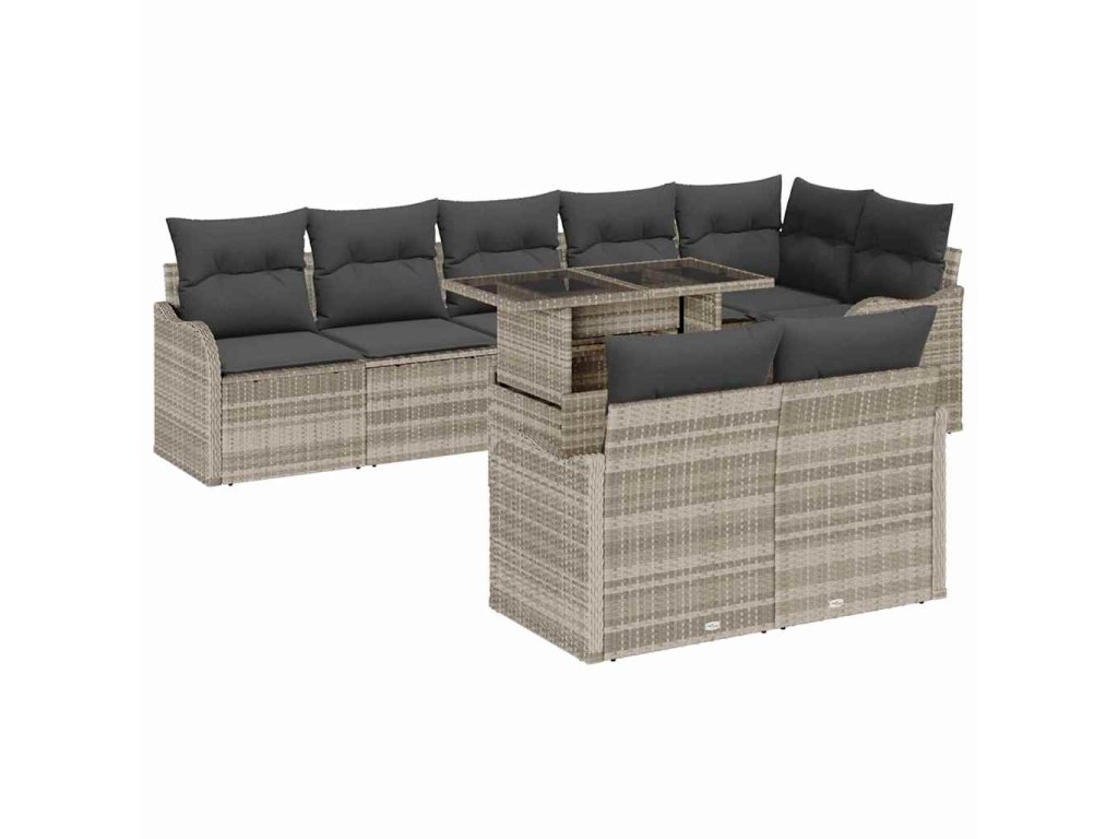 Tento obdĺžnikový lounge set pre 9 ľudí je perfektnou voľbou, ak chceš spojiť štýl a funkčnosť. Navrhnutý pre útulné posedenia vonku, pozdvihne akúkoľvek záhradu alebo terasu svojím moderným a elegantným dizajnom. Jeho usporiadanie je veľmi prispôsobivé, takže sa hodí na rodinné brunchy aj večerné posedenia s priateľmi, kedy sa stane centrom tvojich spomienok.