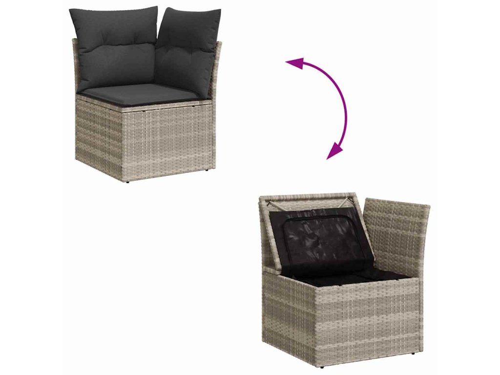 - Všestranné využitie: Tento set je perfektný na záhrady a terasy, ponúkajúci priestor na družnosť alebo pokojné rodinné chvíle. Či už hostíte priateľov alebo grilujete s rodinou, skryté úložné priestory sa skvele hodia na vankúše a vonkajšie potreby, čím ostáva váš priestor uprataný.