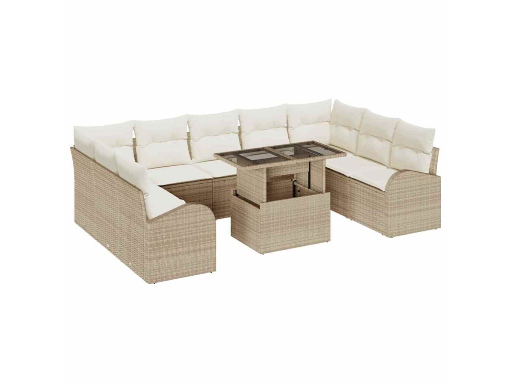 Sada pohoviek s vankúšom 10 pcs béžová a kremová polyratan 3348707