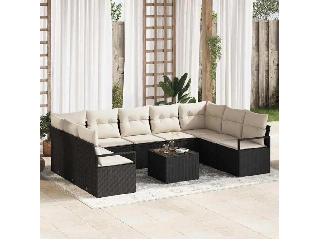 Sada pohoviek s vankúšom 10 pcs Hnedá a smotanová polyratan 3355216