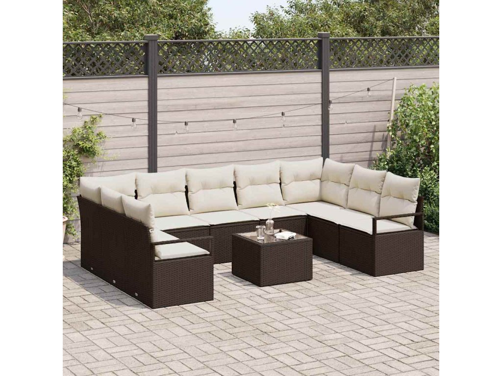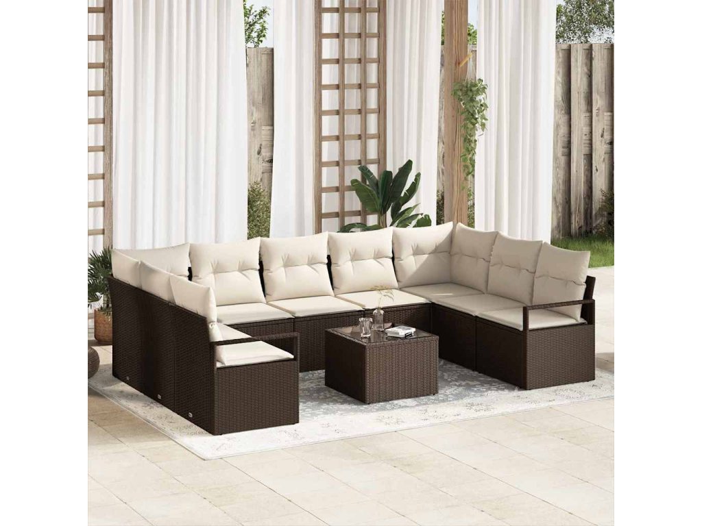Sada pohoviek s vankúšom 10 pcs Hnedá a smotanová polyratan 3355217