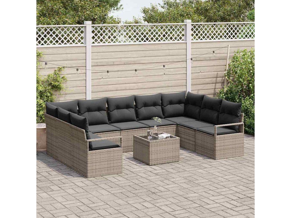 Sada pohoviek s vankúšom 10 pcs Svetlosivá polyratan 3355218