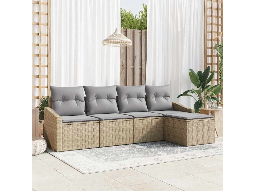 Sada pohoviek s vankúšom 5 pcs Beige a svetlo šedá polyratan 3355349