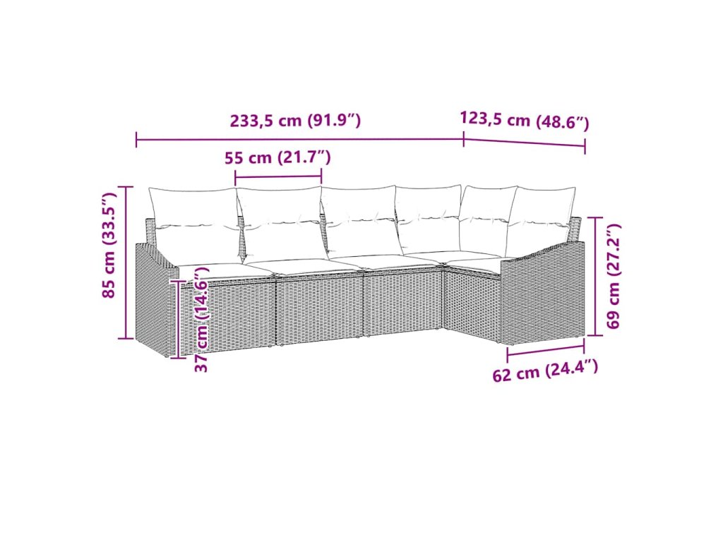 Tento set záhradnej pohovky je skvelý pre moderné vonkajšie priestory. Jeho jednoduchý a funkčný dizajn ponúka príjemný vzhľad, ktorý ladí s každou záhradou či terasou. S rôznymi možnosťami sedenia je ideálny na vytvorenie útulnej lounge časti, a to či už si užívate slnečné dni alebo hostíte návštevy. Minimalistický štýl s čistými líniami a textúrovaním robí z tohto nábytku praktický a atraktívny kúsok. Odolnosť voči poveternostným podmienkam zaručuje, že set vydrží roky, a to aj v náročných podmienkach.
