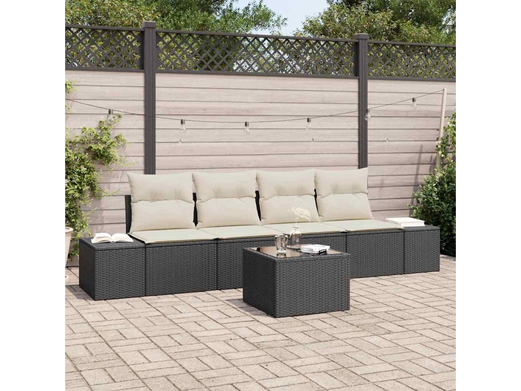 Sada pohoviek s vankúšom 5 pcs Čierna a krémová polyratan 3346927