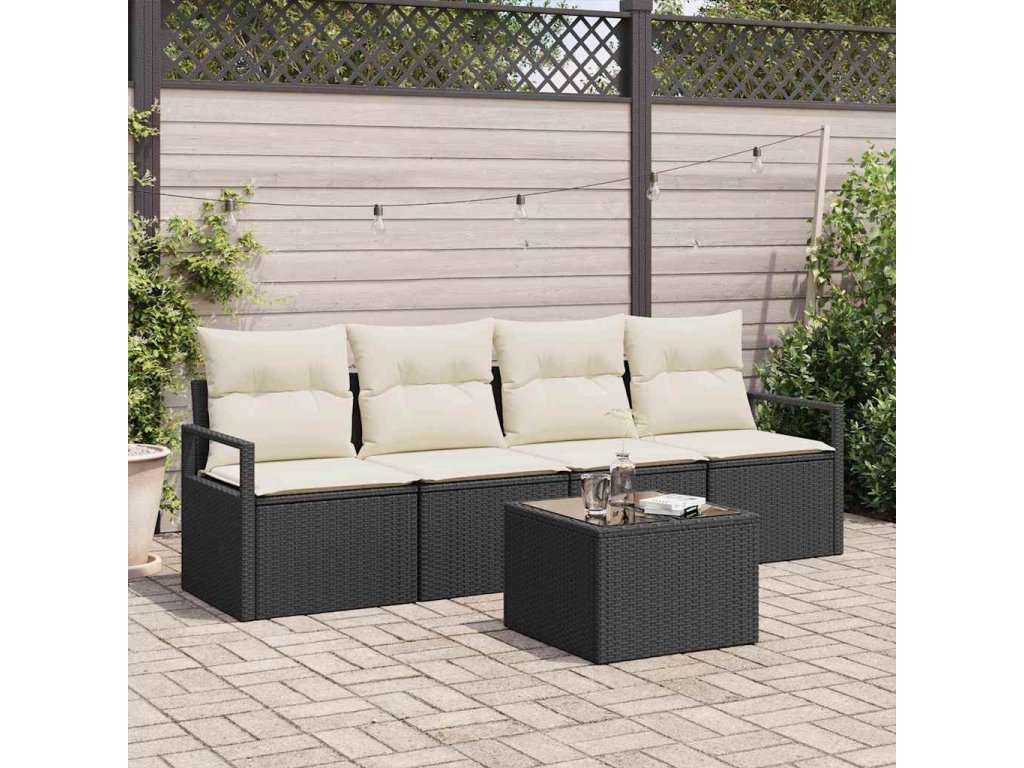 Sada pohoviek s vankúšom 5 pcs Čierna a krémová polyratan 3354916