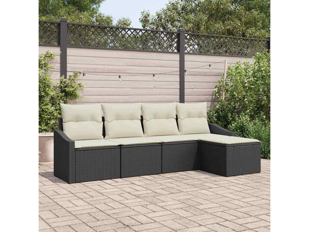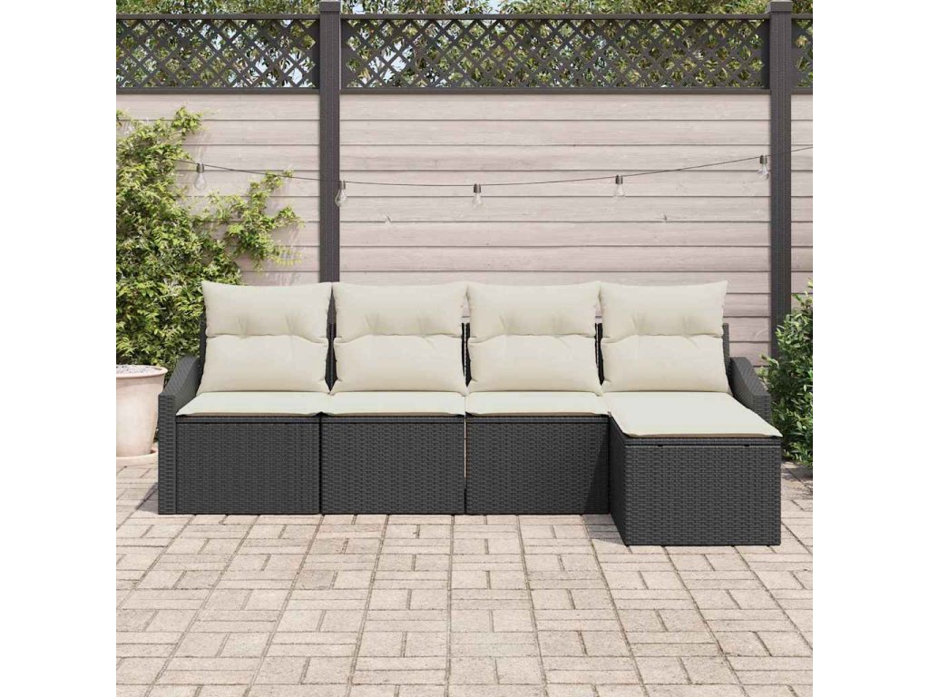 Sada pohoviek s vankúšom 5 pcs Čierna a krémová polyratan 3355346