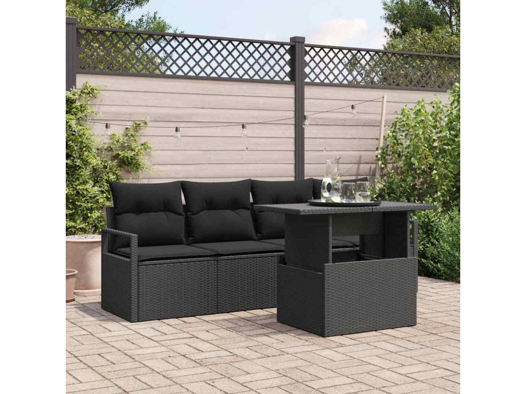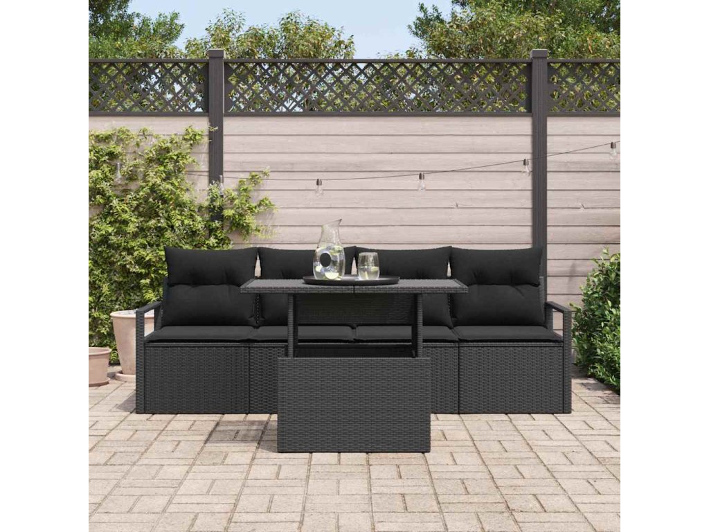 Sada pohoviek s vankúšom 5 pcs Čierna polyratan 3348729