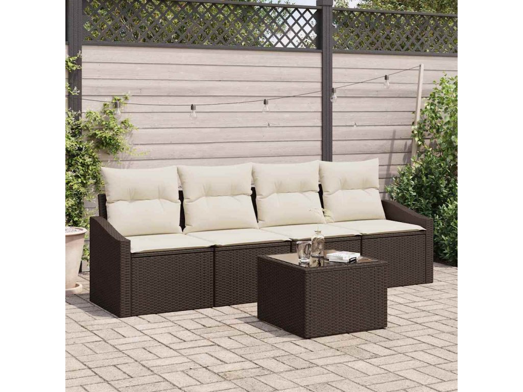 Sada pohoviek s vankúšom 5 pcs Hnedá a smotanová polyratan 3355257