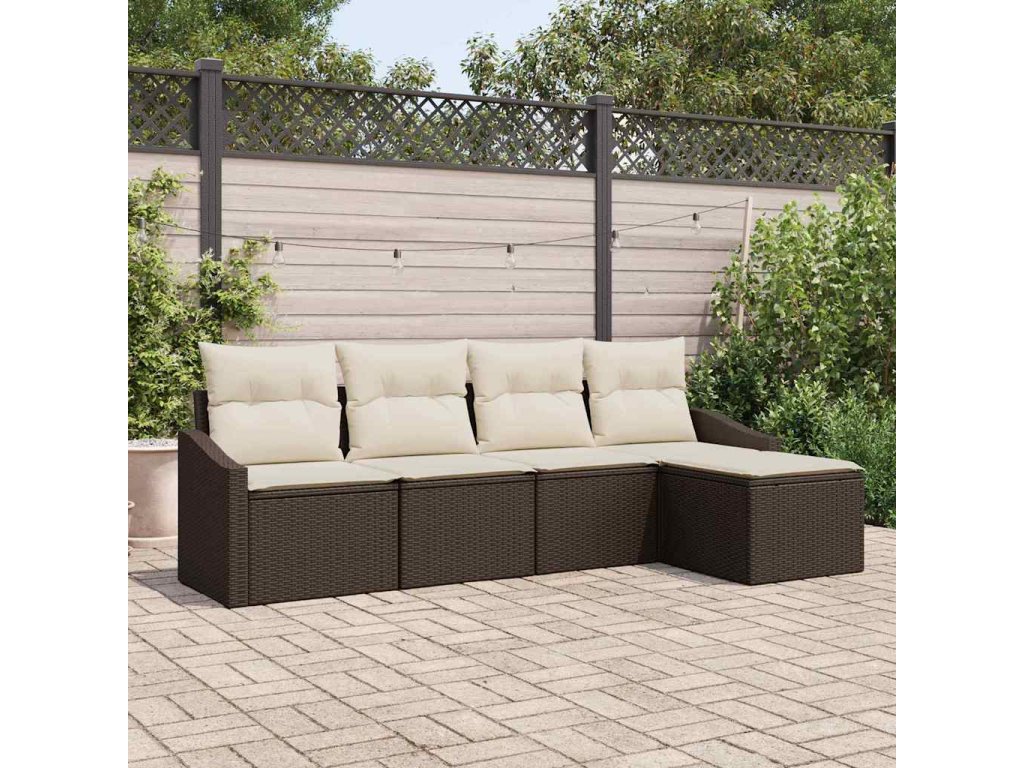 Sada pohoviek s vankúšom 5 pcs Hnedá a smotanová polyratan 3355347
