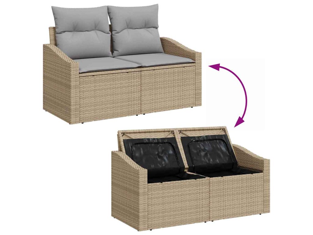 - Premyslené funkcie: Tento set je vybavený vodoodolným úložným priestorom, čo ponúka praktickosť a pohodlie. Jeho odolná konštrukcia odoláva UV lúčom a vlhkosti, čo z neho robí ideálneho spoločníka na dlhé roky na terase.