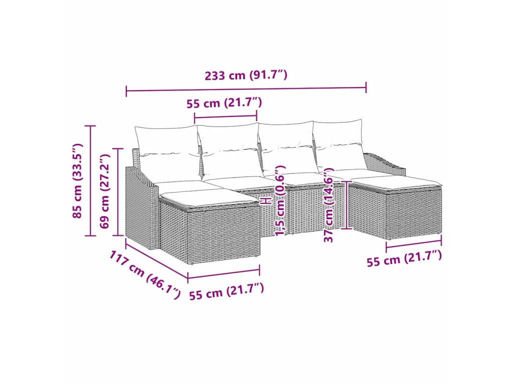 - Pevná konštrukcia z poly ratanu: Tento pohovkový set je pevný a odolný voči opotrebovaniu a UV žiareniu. Poly ratan má skvelý dizajn a textúru, ktorá doplní vonkajšiu atmosféru a je praktický na každý deň.