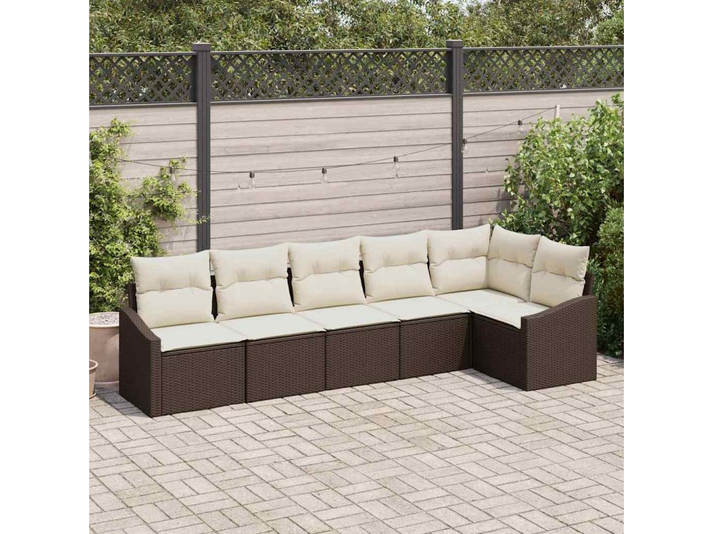 Sada pohoviek s vankúšom 6 pcs Hnedá a smotanová polyratan 3355407