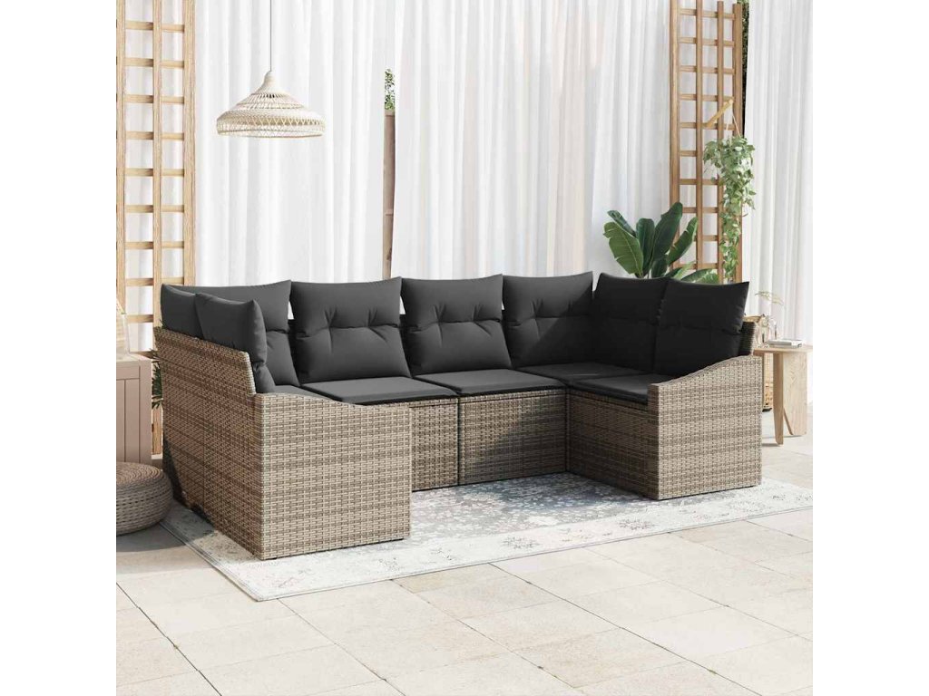 Sada pohoviek s vankúšom 6 pcs Sivá polyratan 3346859