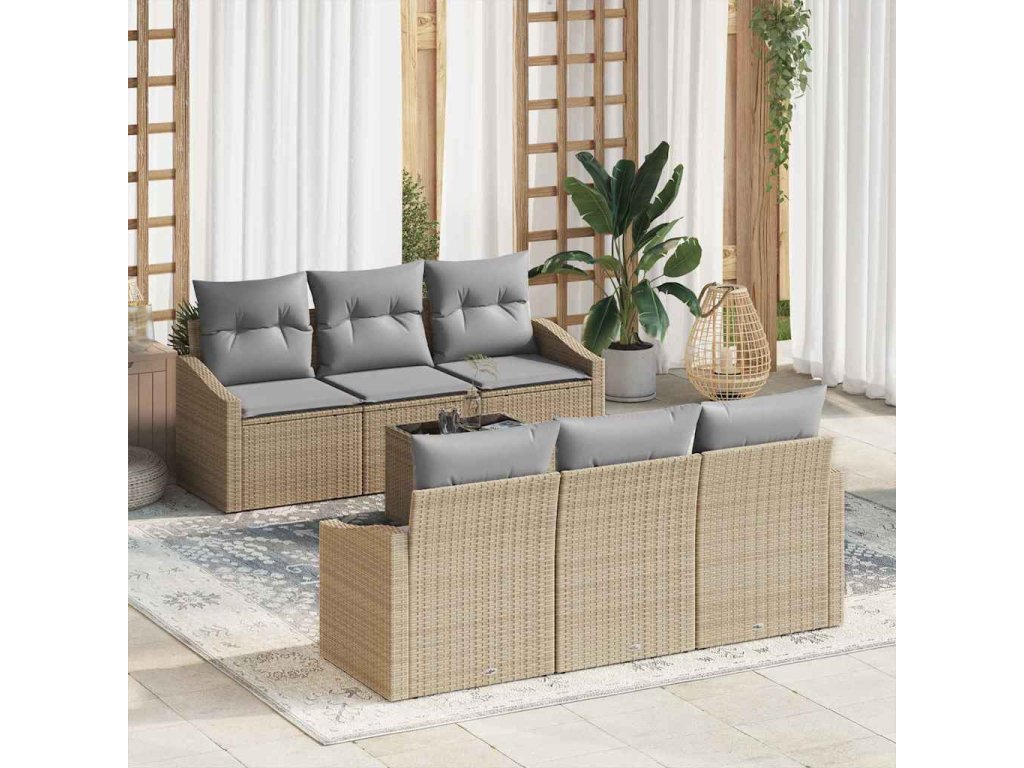 Sada pohoviek s vankúšom 7 pcs Béžová a šedá polyratan 3355279