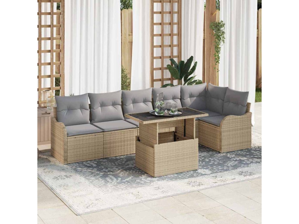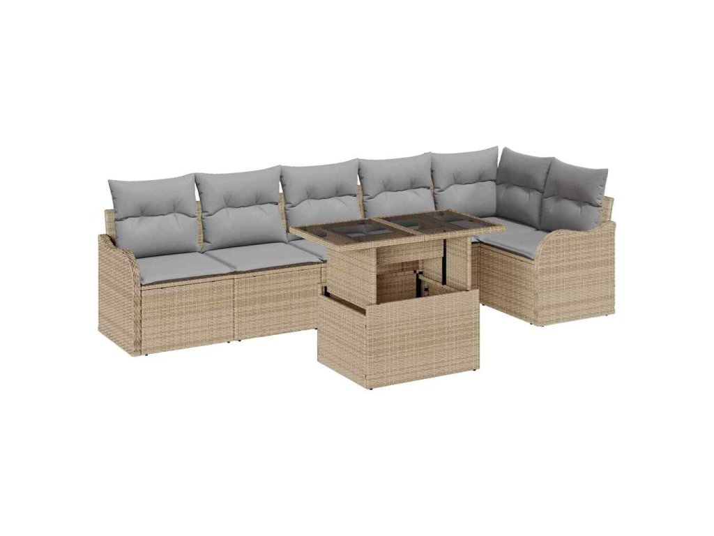 Sada pohoviek s vankúšom 7 pcs Béžová Poly ratan 3348476