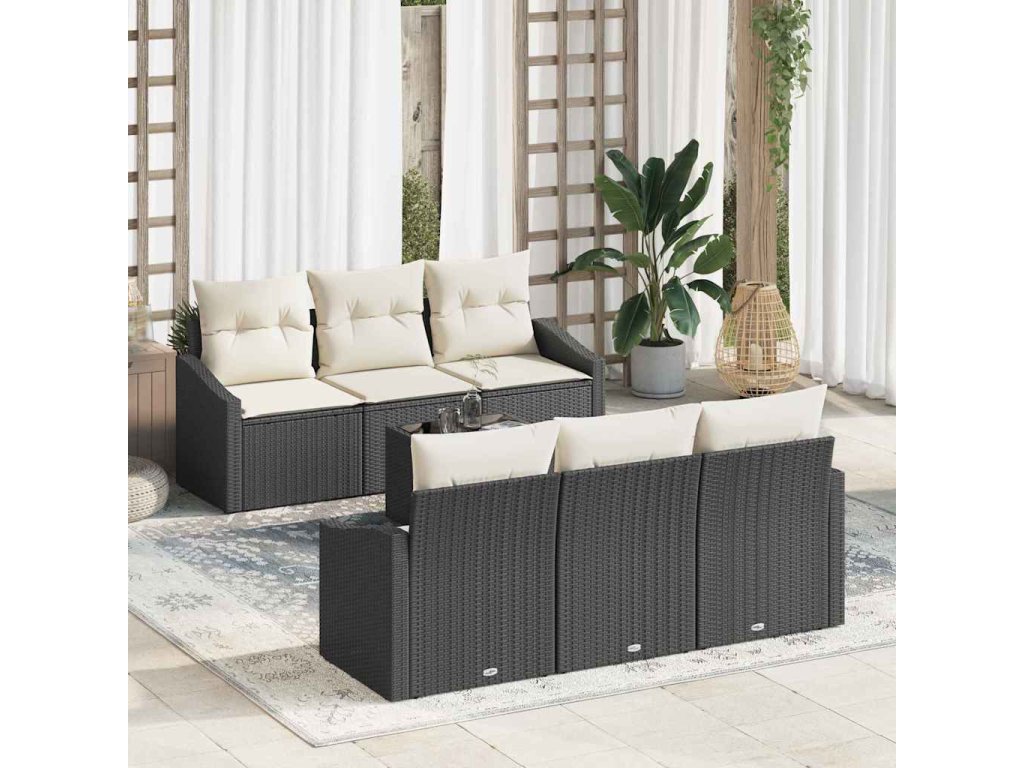 Sada pohoviek s vankúšom 7 pcs Čierna a krémová polyratan 3355276