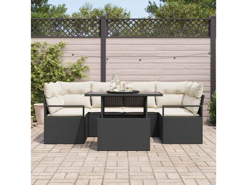 Sada pohoviek s vankúšom 7 pcs Čierna polyratan 3348753