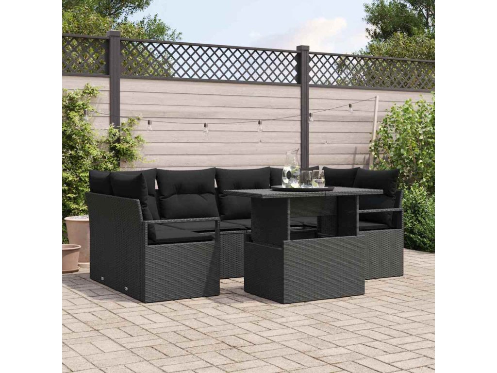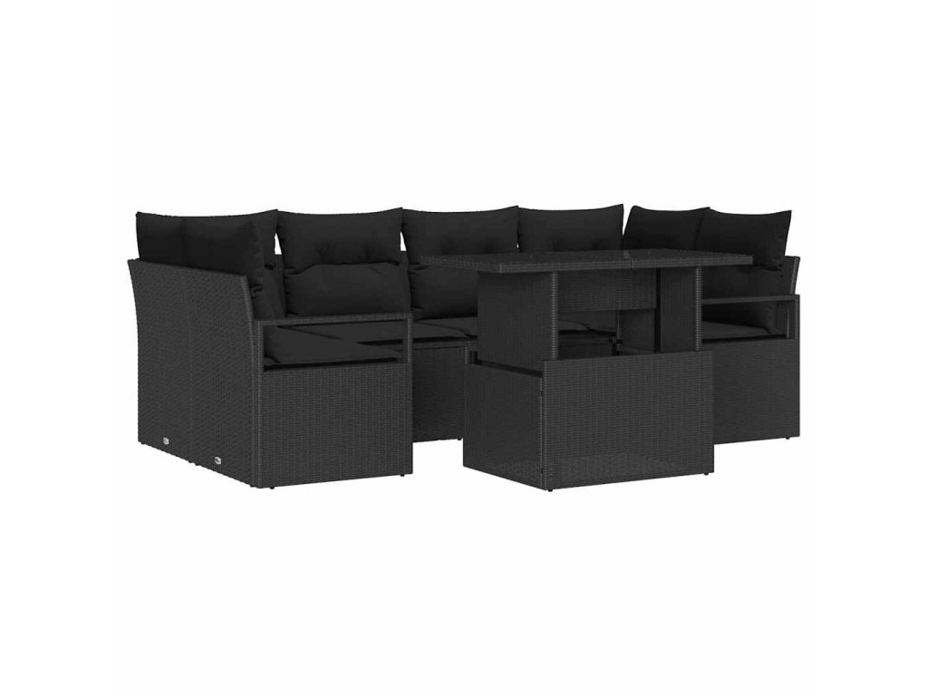 Sada pohoviek s vankúšom 7 pcs Čierna polyratan 3348759