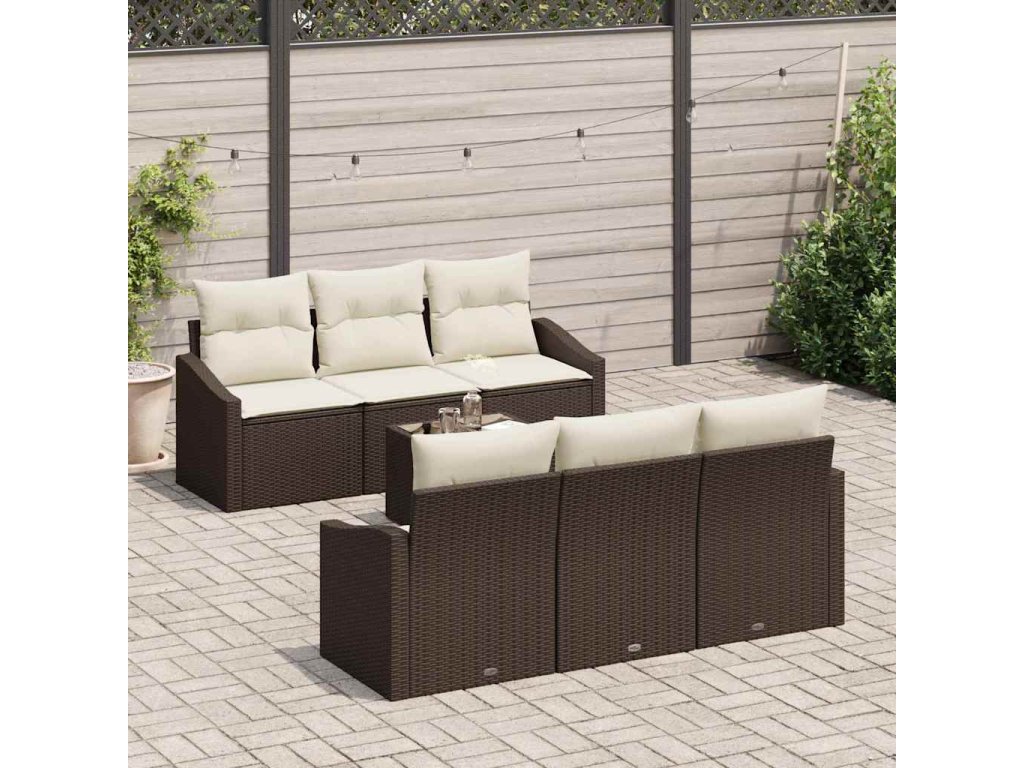 Sada pohoviek s vankúšom 7 pcs Hnedá a smotanová polyratan 3346608