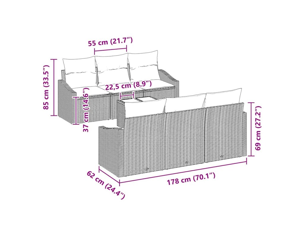 Táto súprava sofa do záhrady je skvelým riešením pre vaše vonkajšie relaxovanie, s moderným dizajnom a čistými líniami. Je ideálna na jar a v lete do záhrady alebo na terasu, s oceľovým rámom a poly ratanovými prvkami, ktoré dodávajú štýlovosť a odolnosť. Tento set vás pozýva na záhradné párty, lenivé popoludnia či pohodové stretnutia s priateľmi a rodinou a zaisťuje všestrannosť a dostatok sedenia pre dokonalý zážitok.