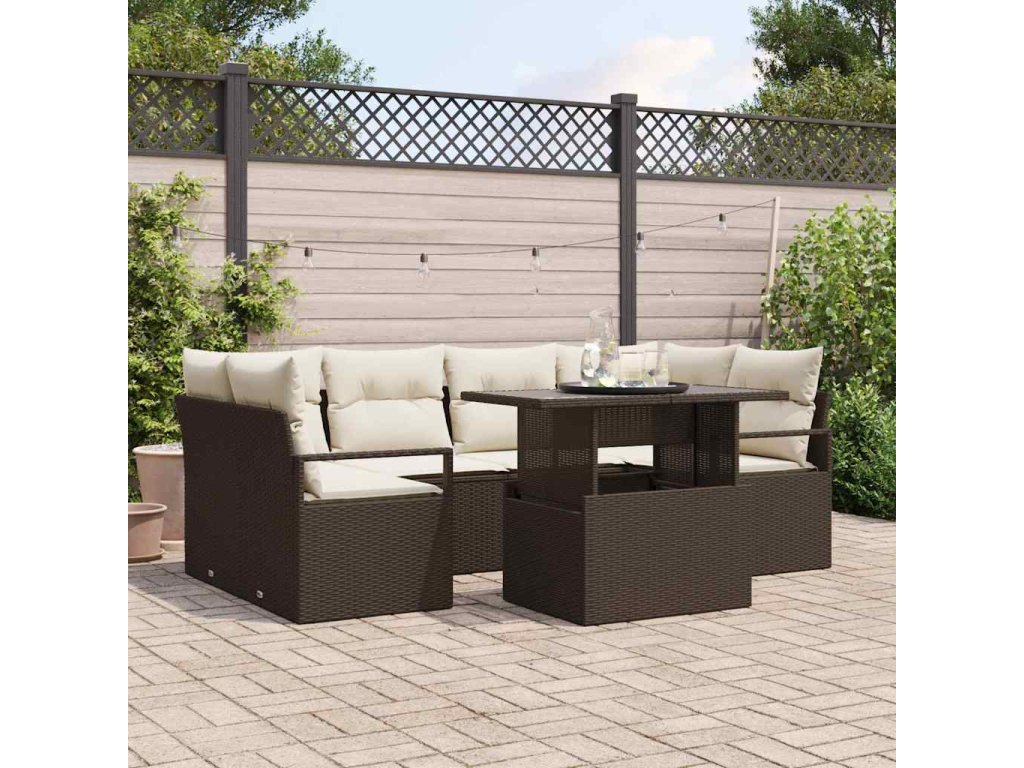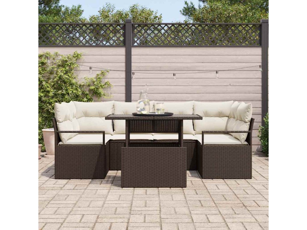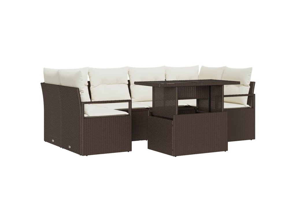 Sada pohoviek s vankúšom 7 pcs Hnedá polyratan 3348754
