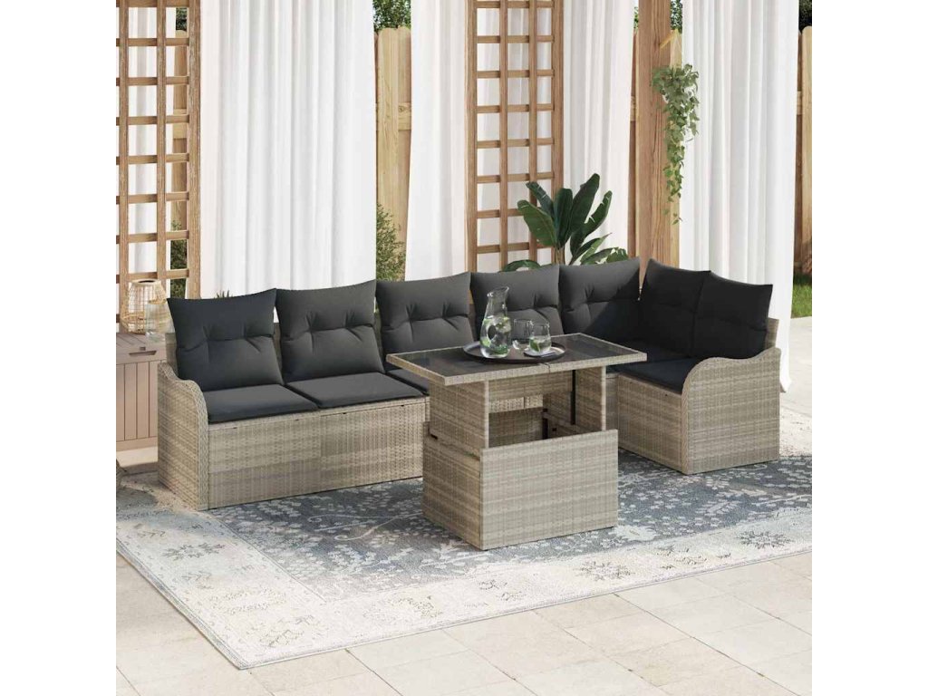 Sada pohoviek s vankúšom 7 pcs Svetlosivá Poly ratan 3348478
