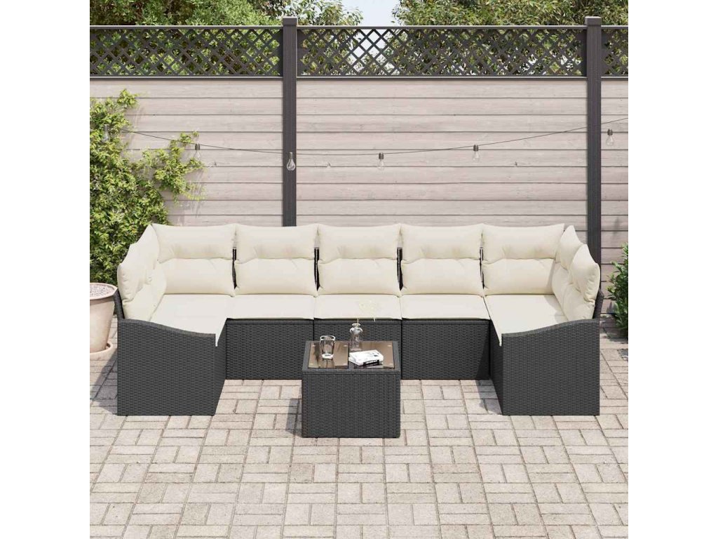 Sada pohoviek s vankúšom 8 pcs Čierna a krémová polyratan 3355306